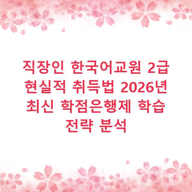 직장인 한국어교원 2급 현실적 취득법 2026년 최신 학점은행제 학습 전략 분석