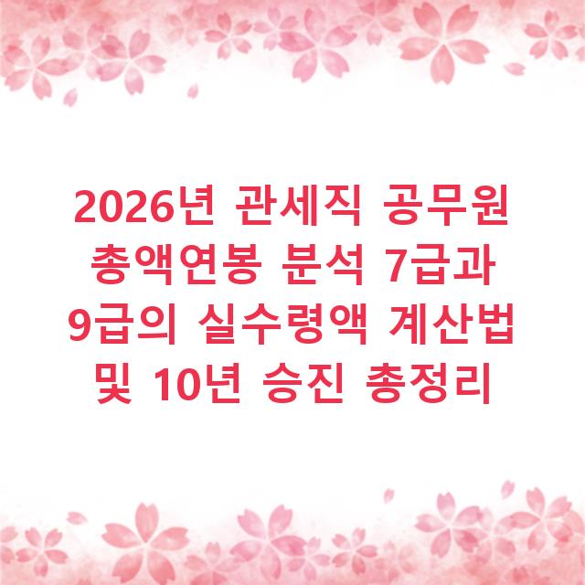 본 글에 제시된 모든 연봉, 수당, 세액 계산 수치는 2026년 관세청 봉급표, 국가통계포털 데이터, 및 관련 업무보고서를 기반으로 한 시뮬레이션 및 추정치입니다. 실제 개인의 실수령액은 근무 부서, 호봉, 연도별 제도 변경, 개인별 초과근무량 등에 따라 상당한 차이가 있을 수 있습니다. 구체적인 정보는 관세청 인사과 또는 담당 부서에 문의하시기 바랍니다. 이 글은 법률적·행정적 조언을 대신하지 않습니다.