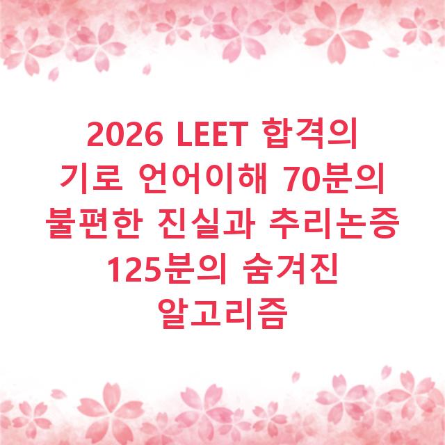 2026년 LEET의 합격 증서는 가장 뛰어난 법학도를 위한 게 아닙니다. 195분이라는 제한된 자원 속에서, 자신의 강점과 약점을 정확히 인지하고 최적의 선택을 쌓아올린 ‘현명한 자원 관리자’에게 주어집니다. 오늘 당장, 첫 모의고사의 타이머를 5분 줄여서 시작해보세요. 그 불편함이야말로 진짜 공부의 시작입니다.